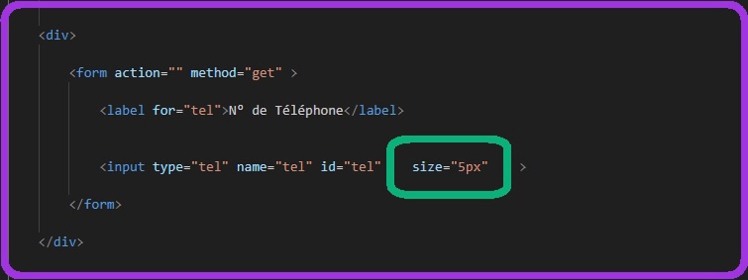 Exemple de modification de sytle dans HTML sur la zone de saisie. Ici, une size de "5px" qui fait une petite zone de saisie.