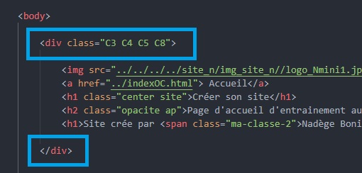 • HTML : Mettre des balises ‹div›‹/div› pour déterminer le block voulu. rajouter dans la première balise "div" le "C4", comme ceci : class="C3 C4".