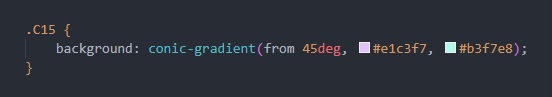 Option : il existe plusieur option, voir : ici. Exemple de l'utilisation du : from 45deg dans la balise valeur : Background: conic-gradient (from xdeg, color x, color y)