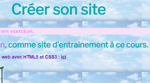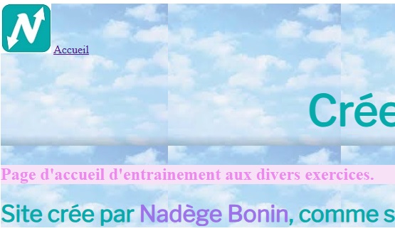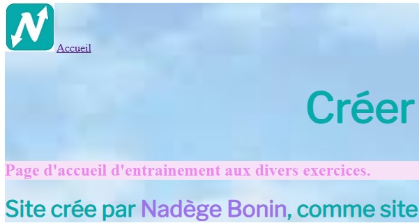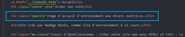 • HTML : Exemple sur "Page d'acceuil d'entrainement aux divers exercices.", écrire dans la 1ere balise : class="opacite".