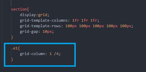 "grid-colum: x / y;" indique la ligne verticale de départ (x) et d'arrivée (y) de l'élément en une seul ligne de commande CSS.