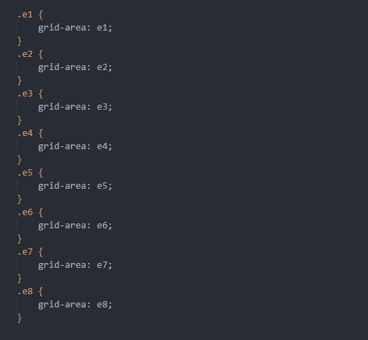 Modifictaion des zones, changer les "e1" "e2"... en fonction du choix voulu dans les "grid-template-areas".