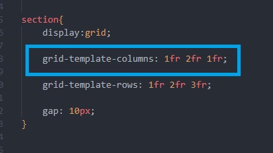 HTML : Attribuer une hauteur (exemple : 1fr 2fr 3fr).