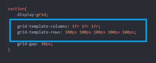 C'est pour le nombre de rangées, et la hauteur de chacune d'entre elles. Par exemple, si on met grid-template-rows : 50px 50px 50px, c'est qu'il y a trois rangées de 50px de hauteur.